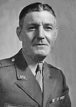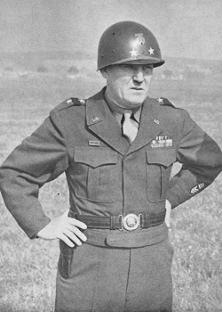In February, 1945, he was appointed assistant division commander of the 90th Infantry Division, being promoted to division commander as a Major General in March. The unit participated in fighting from the Eifel Mountains to the Rhine River and captured Mainz, Germany. After crossing the river, the continued the battle from the Thuringian Forest towards Czechoslovakia. As they were clearing the town of Merkers in April, they captured German caves containing tons of gold along with millions in foreign currency. They also found many looted art work treasures. They accepted the surrender of the 11th Panzer Division in Vseruby, CZ. The 90th remained in Europe as occupation troops, following the end of combat, through December, 1945, when the division was inactivated. He was then assigned as the assistant chief of staff for operations at the Army Ground Forces headquarters, remaining there until September 30, 1947, when he retired.