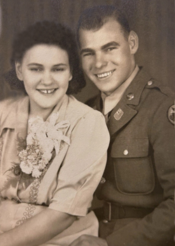 Service Time: Marvin entered the service on October 17, 1942, and would have then been sent to complete his basic training. While on leave from the unit, Marvin traveled back to Ohio and married the former Alma Marie Sigafoos on November 13, 1943. Alma who was born in Akron, OH and was the daughter of Sherman Sigafoos and Elizabeth “Bessie” Surko. Reverend Robert Matthews of the Millersburg Church of Christ preformed the service.